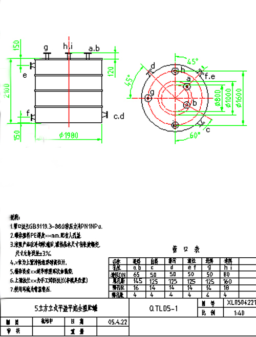 5立方平底平蓋特種儲罐 本頁僅列出有代表性的圖紙,供用戶選型時參考。